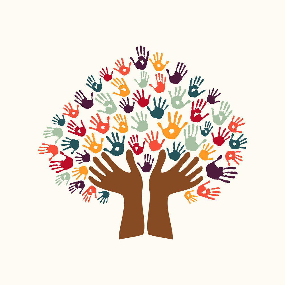 Hand print ethnic tree symbol of culture diversity